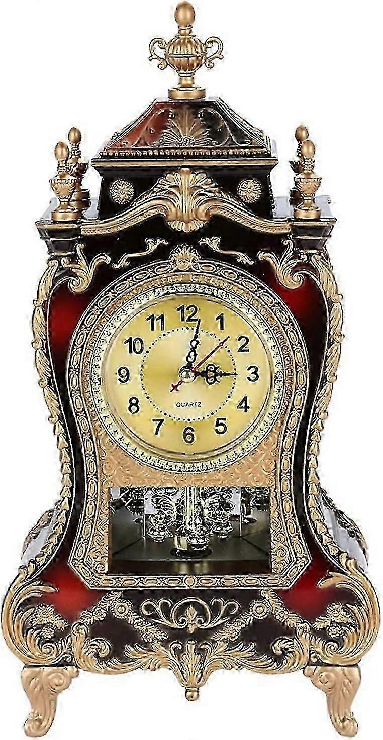 Vintage Desk Clock, European-Style Table Clock Wall Clock with Ornate Details and Vintage Finish, Antique Mantel Clock f-Brown Red