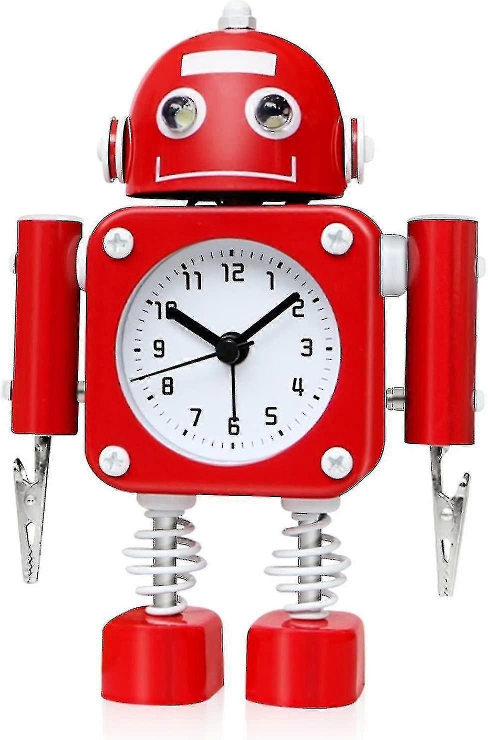 Non-ticking Robot Alarm Clock Stainless Metal - Wake-up Clock With Flashing Eye Lights (ruby Red)