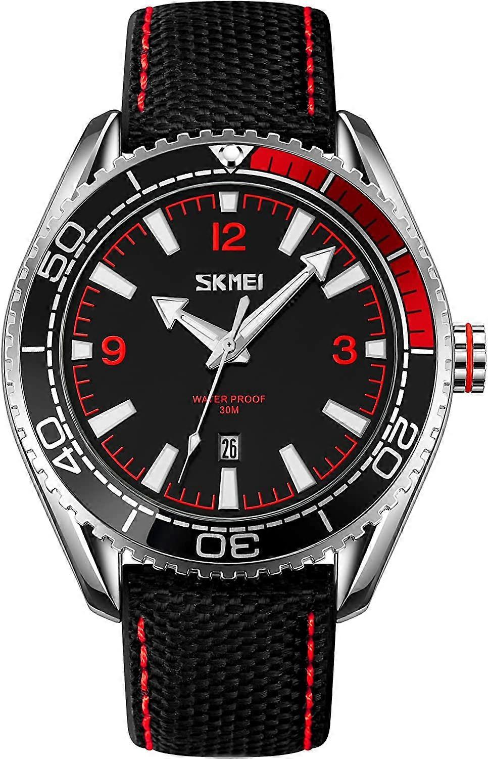 Men's Wrist Watch, Quartz Watch with Leather Strap, Fashion Minimalist Waterproof Watch Analog Date Business Watches for Men Red