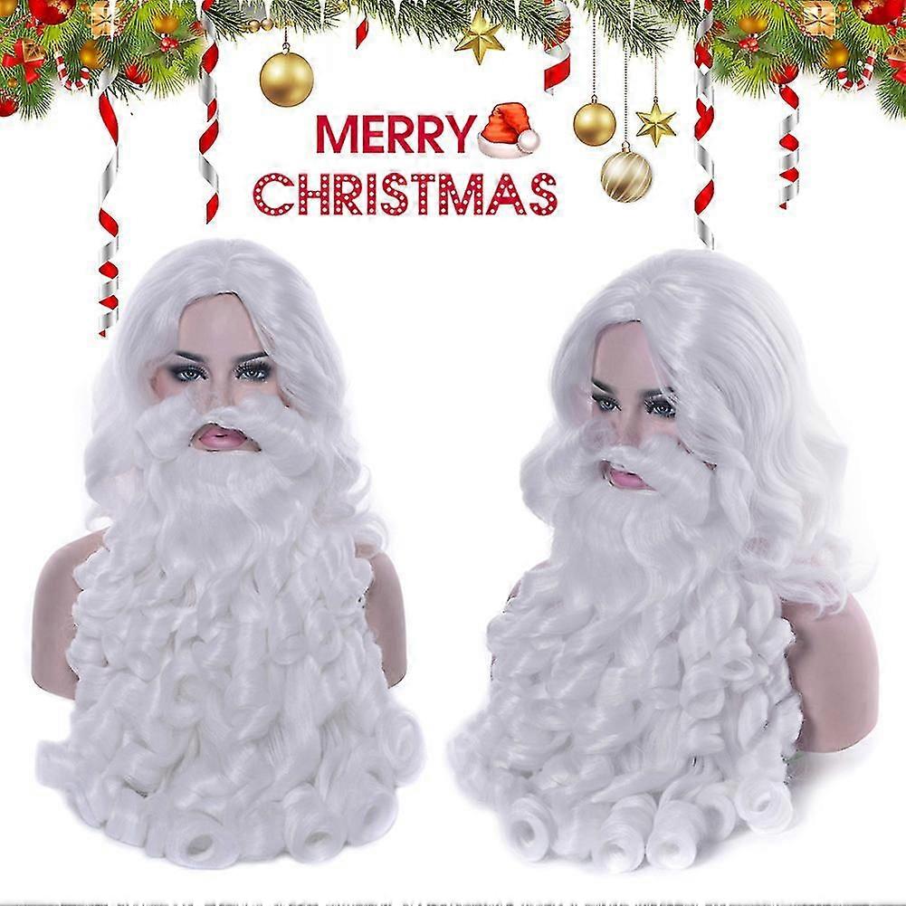 Santa Claus Wig Beard Long White Fancy Dress Costume Accessory For Christmas Party @BUGU