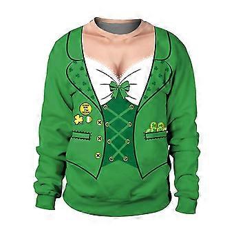 St Patricks Day Sweatshirt Irish Shamrock Pocket Clover Men Crewneck Pullover