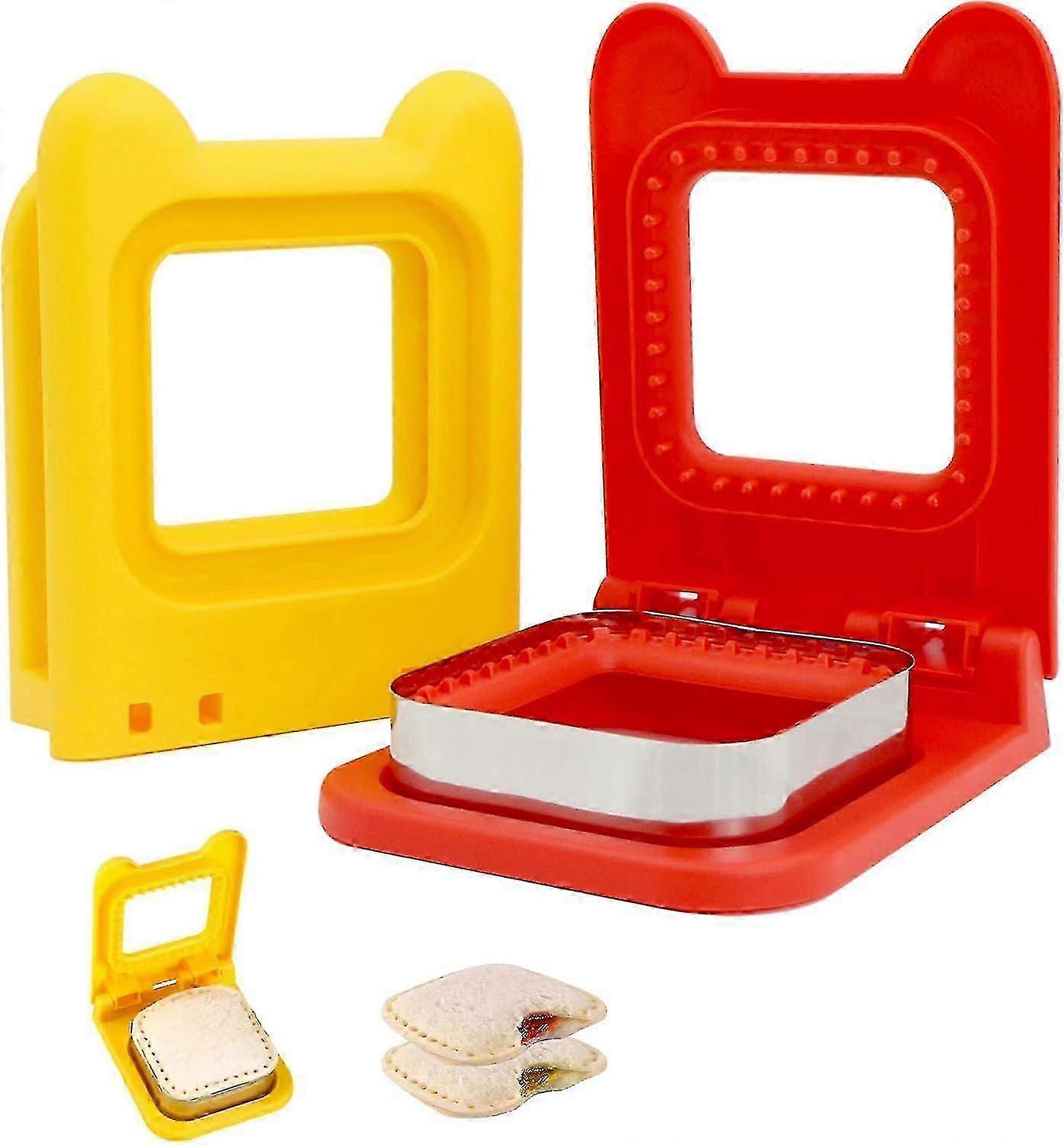 Sandwich Cutters Sealer - 2Pcs Square Sandwich Bread Mold and Sealers, Stainless Steel and Plastic, for DIY Pocket Sandwiches, Cookies and Bento (Red