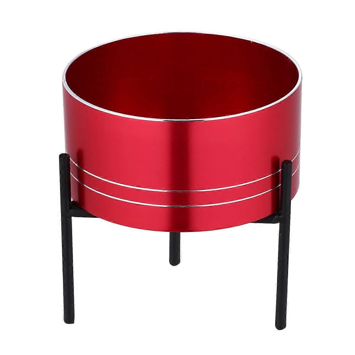Aluminum Alloy and Iron Plant Stand with Creative Container for Succulents Red Simple Round Design