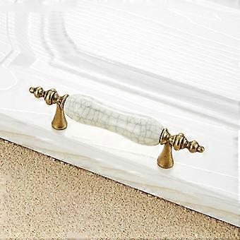 Zinc Alloy Drawer Knobs Wardrobe Door Puller White Ceramic Cracked Cabinet Handle with 22mm Screw