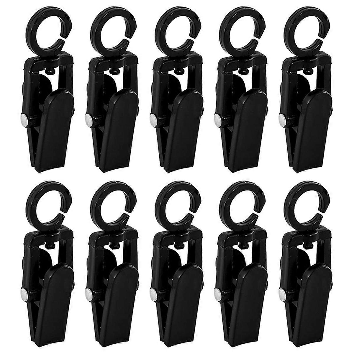 Keep your hats,scarves,towel,and undergarments organized with these versatile rotating curtain clips. Made of plastic,these clips are designed to withstand wind and prevent items from falling. Great for both home and outdoor use,these clips are perfect for families,beach trips,offices,workshops,gardens. Whether you need to hangs clothes in laundry rooms or keep your accessories organized at beach,these clips are a must have. Say goodbye to clutter and hello to convenience with these multi functional rotating curtain clips. Color: Black Material: plastic Package Contents: 10 x clips Only above package content, other products are not included. Note: Light reflection and different displays may cause color of item in picture a little different from real thing. The measurement allowed error is +/- 1-3cm.