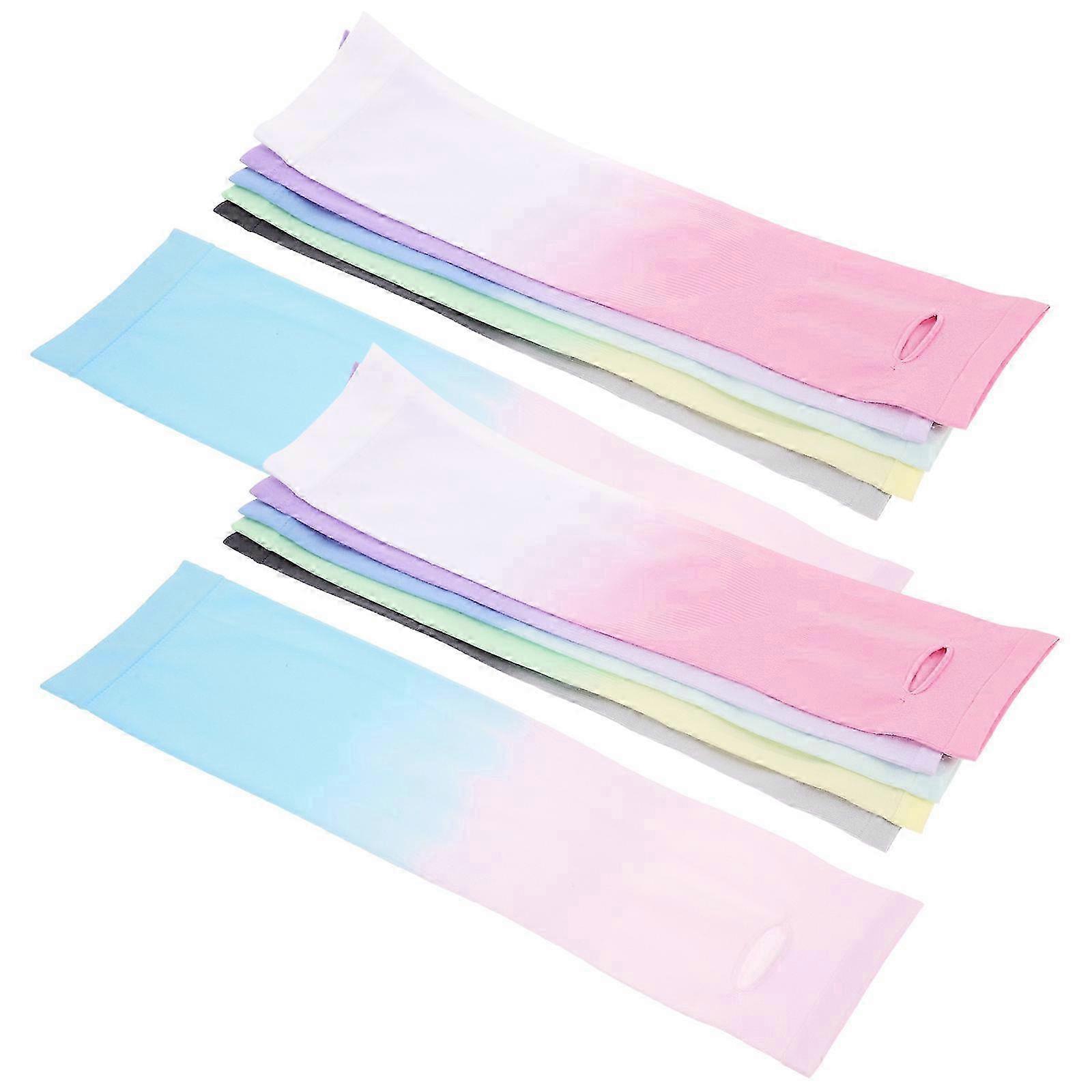 Six pairs of nylon, breathable, sun-resistant, cooling arm sleeves for summer outdoor activities.