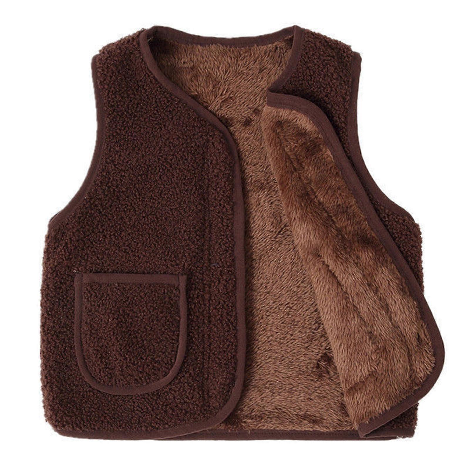 Kids Winter Fleece Vest Keep Warm Large Pockets Thermal Waistcoat for Cold Days Dark Brown 150cm