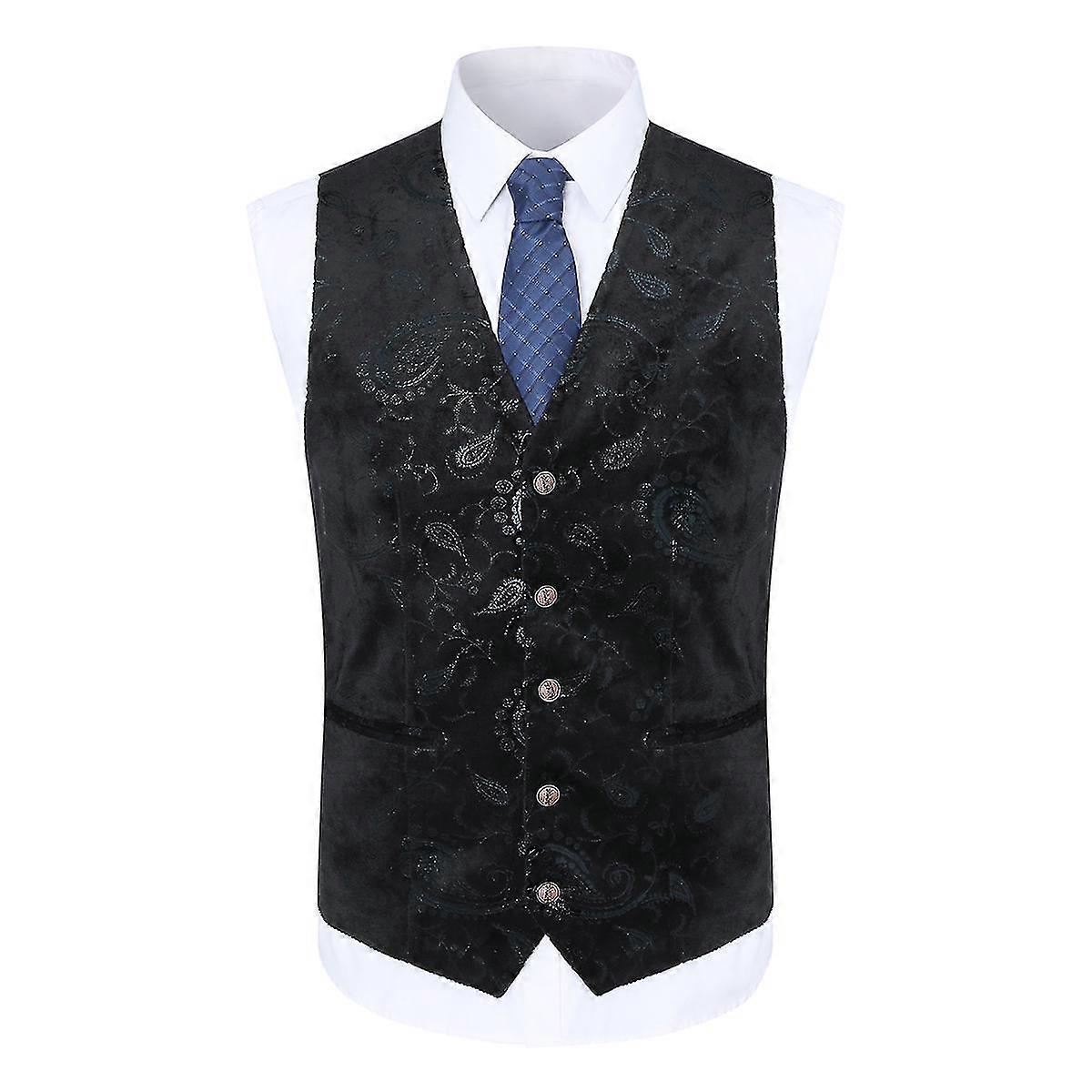 [Size Chart(cm)] [XS]: Bust 96cm Length 64cm Shoulder 36cm Waist 88cm [S]: Bust 100cm Length 66cm Shoulder 38cm Waist 92cm [M]: Bust 104cm Length 67cm Shoulder 39cm Waist 96cm [L]: Bust 114cm Length 69cm Shoulder 42cm Waist 106cm [XL]: Bust 124cm Length 71cm Shoulder 45cm Waist 116cm [2XL]: Bust 130cm Length 72cm Shoulder 47cm Waist 122cm [3XL]: Bust 136cm Length 72cm Shoulder 48cm Waist 128cm [NOTICE]: Package includes: 1*Vest; Items are slightly smaller than expected. Thanks for your support and understanding [Material]: Fabric: 70% polyester, 30% viscose [Occasions]:Suitable for both formal and informal occasions - Business, Presentation, Prom, Wedding, Banquet, Event, Date, Daily Wear, Party, etc. Look formal, mature and gentlemanlike matching with Shirt, Jacket, Suit, Tuxedo [Version]: slim fit [Neck type]: V-neck [Place]: single breasted five buttons [Hem]: Pointed hem [Washing instructions]: Hand wash at low temperature is recommended. Dry cleanable. Low temperature iron, never use bleach. [Product Introduction]: 1. Selection of high-quality fabrics, delicate texture, showing confidence and elegant taste 2. The neckline of the vest adopts a stand-up collar design, which makes the neck very comfortable and soft, showing masculinity, 3. Highlight the wide shoulders, three-dimensional version, stylish wearing, not easy to deform. 4. Due to the influence of shooting equipment and light, there may be slight color differences between the actual product and the picture. 5. Simple and generous vest design, we are constantly pursuing the beauty of the details and the comfort of wearing Note: Due to different measuring equipment and methods, there will be a 1-3cm error between the actual data and the data in the size chart.
