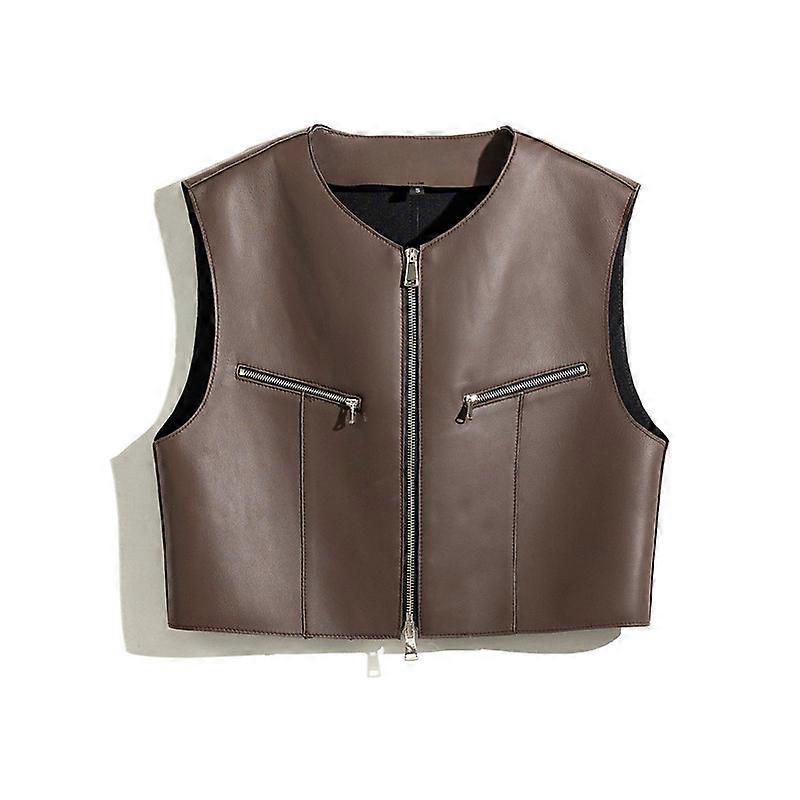 Genuine Leather Vest For Women Lapel Sleeveless Moto Slim Fit Motorcycle Biker Waistcoat