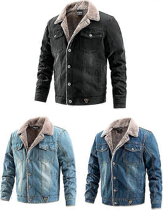 Men's plush denim jacket winter denim jacket windproof casual jacket