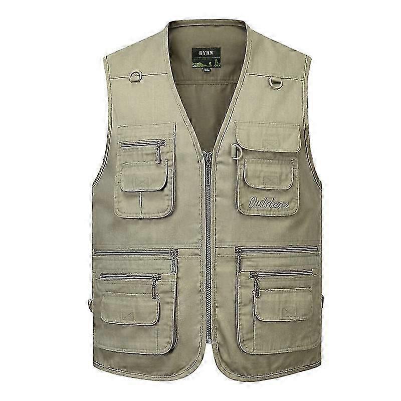 "Men's Vest Casual Jacket Spring and Autumn Loose Style Cotton Multi-pocket Zipper Windproof Coat Co