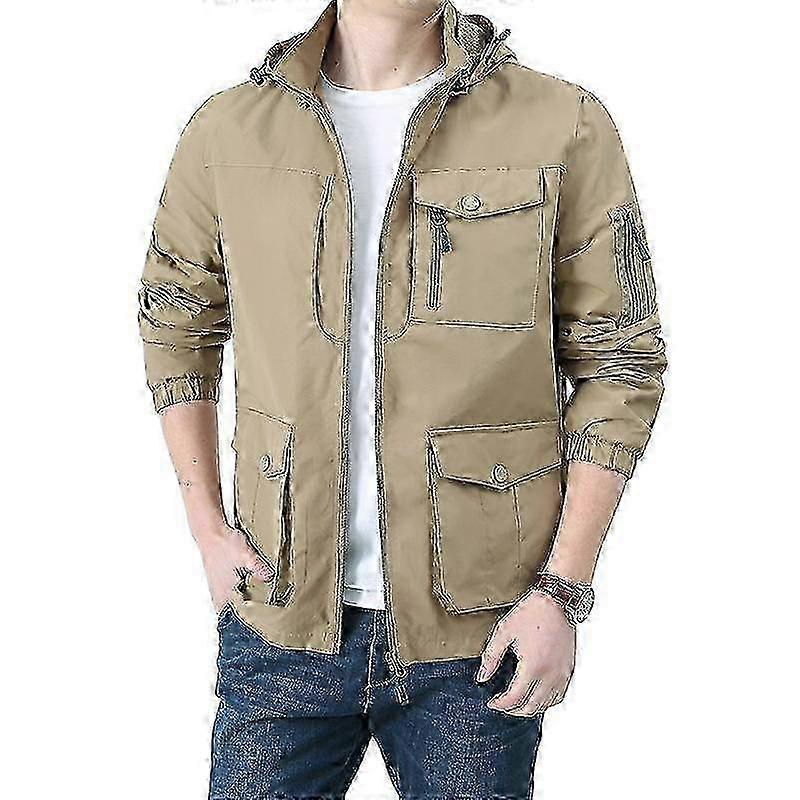 Jacket Men's Loose Plus Size Multi-pocket Jacket Can Take Off The Hood Work Coat Top