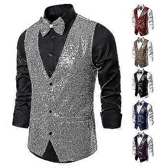 سترة رجالية لامعة من الترتر ، صدرية بدلة برقبة V