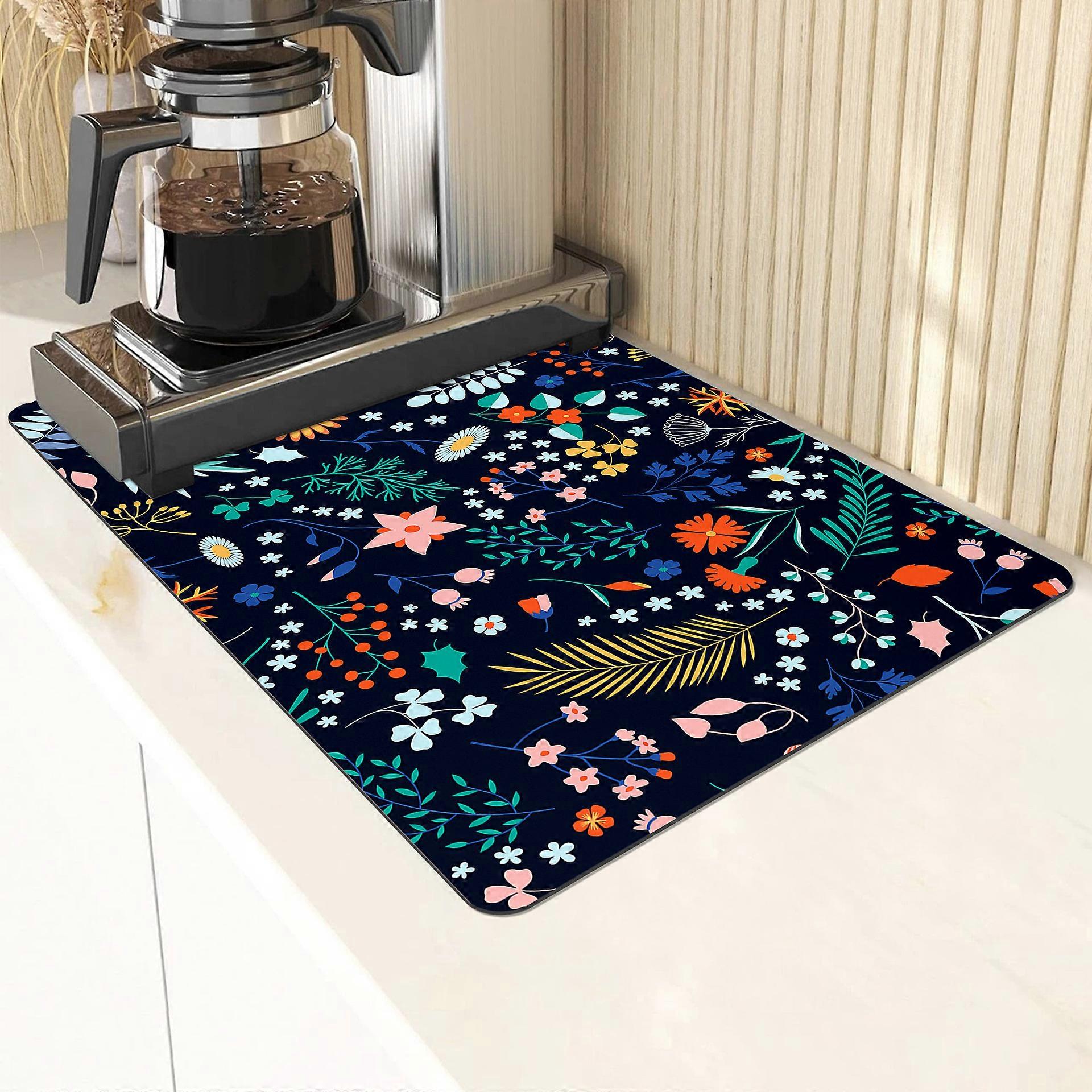 Microfiber Dish Drying Mat for Kitchen Counter 16'' x 20'' Colorful Flowers Black Absorbent Dish Draining Mat Extra Large