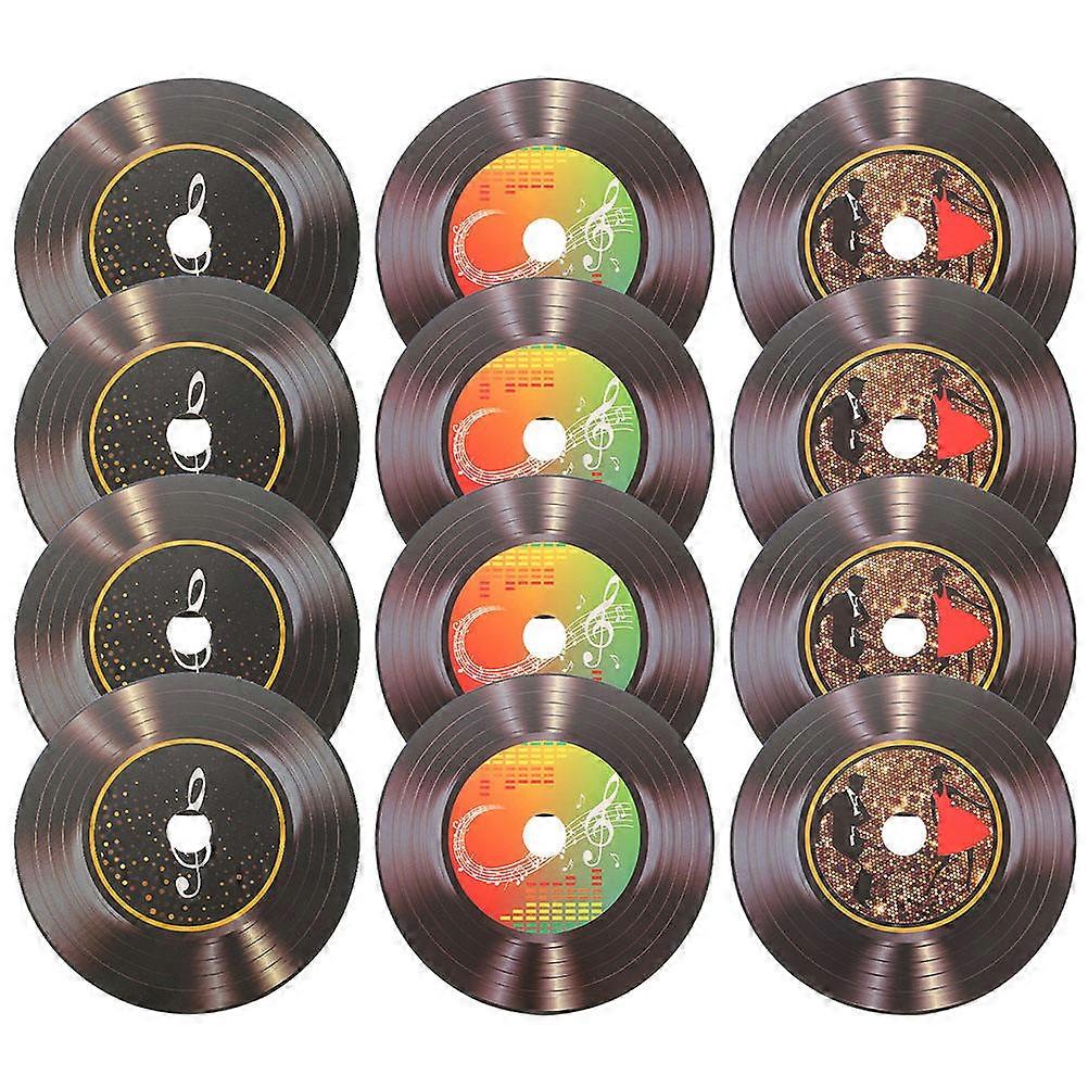 Vinyl Records Decor Round Retro Style Home Furnishing Paperboard PVC Coating Music Theme Party Favors 15Pcs