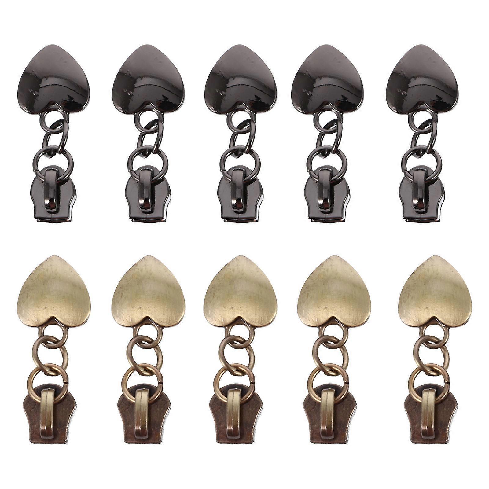 Metal Zipper Pulls Heart Design for Backpacks and Travel Suitcases 10Pcs