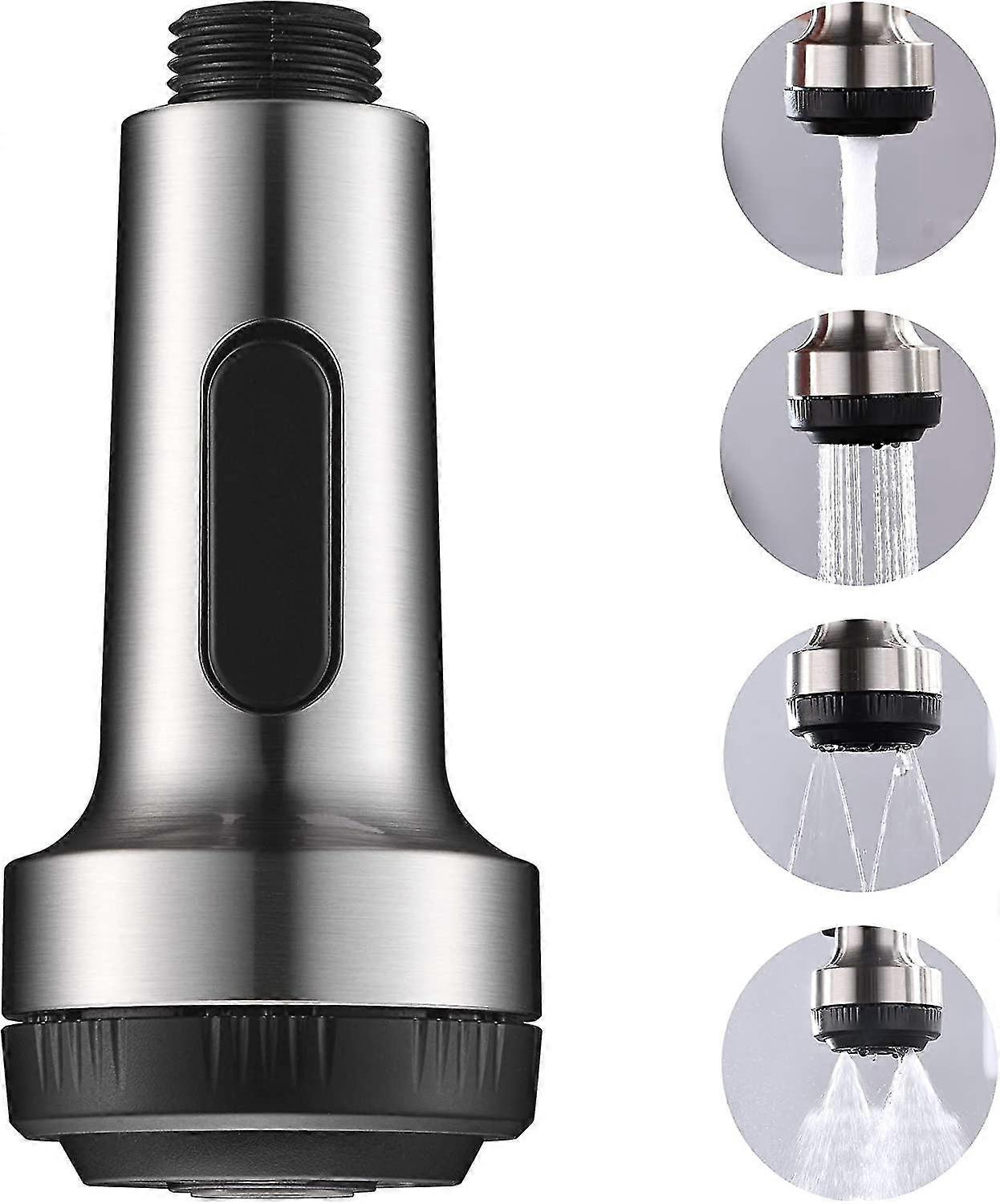 Pull Out Kitchen Faucet Spray Head, 4-function Kitchen Faucet Sprayer Nozzle Replacement Kitchen Tap Sprayer, Brushed Nickel Finish With G1/2 Connecto