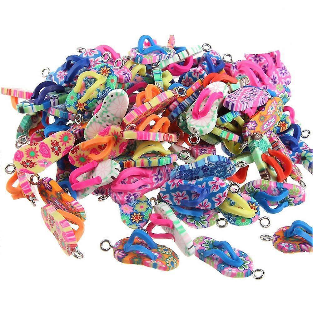 Charm Pendant Artificial Clay Ornament Pendant Jewelry Accessories Slipper Shape Design Ornament Assorted Color 40Pcs