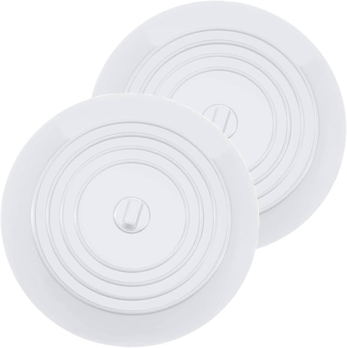Silicone Bath Plugs Kitchen Sink Stopper 15.3cm Diameter for Kitchens, Bathrooms and Laundries Drain Plug (2PCS, White)