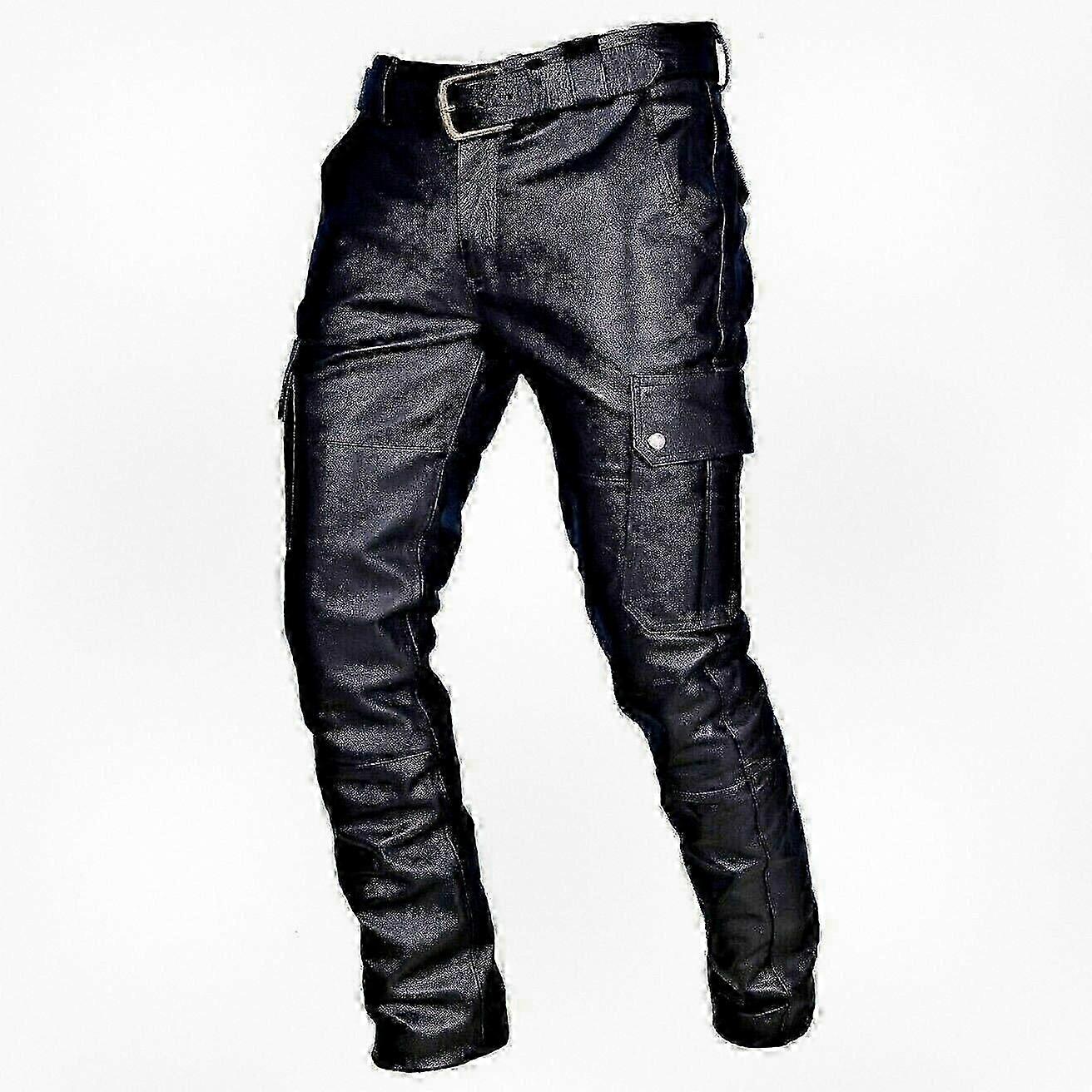 High Quality Men's Real Leather Biker Pants for Motorcycle Riding, Fashion Black Punk Pants for Men, Durable & Stylish Riding Gear