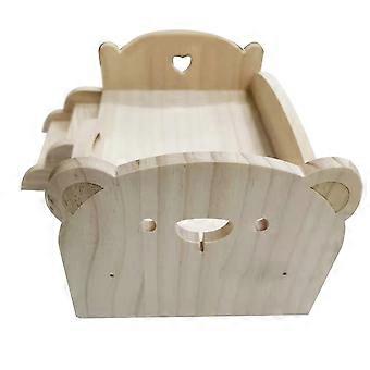 Wooden Play Bed for Dolls Universal Wooden Bed Wooden Doll DIY Mini Play Bed for Dolls Children'S Day Gift(Bear)