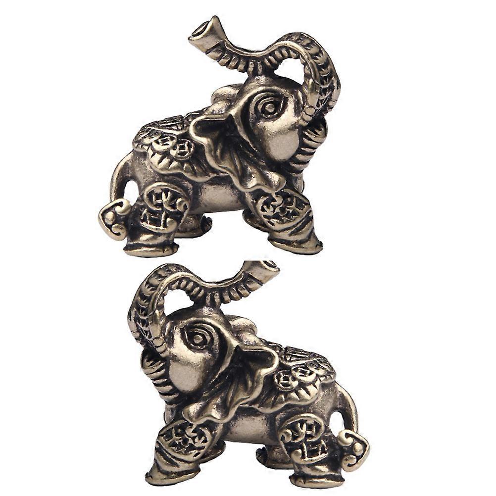 Desktop Elephant Miniature Copper Elephant Decoration Retro Style Home Decor 2Pcs