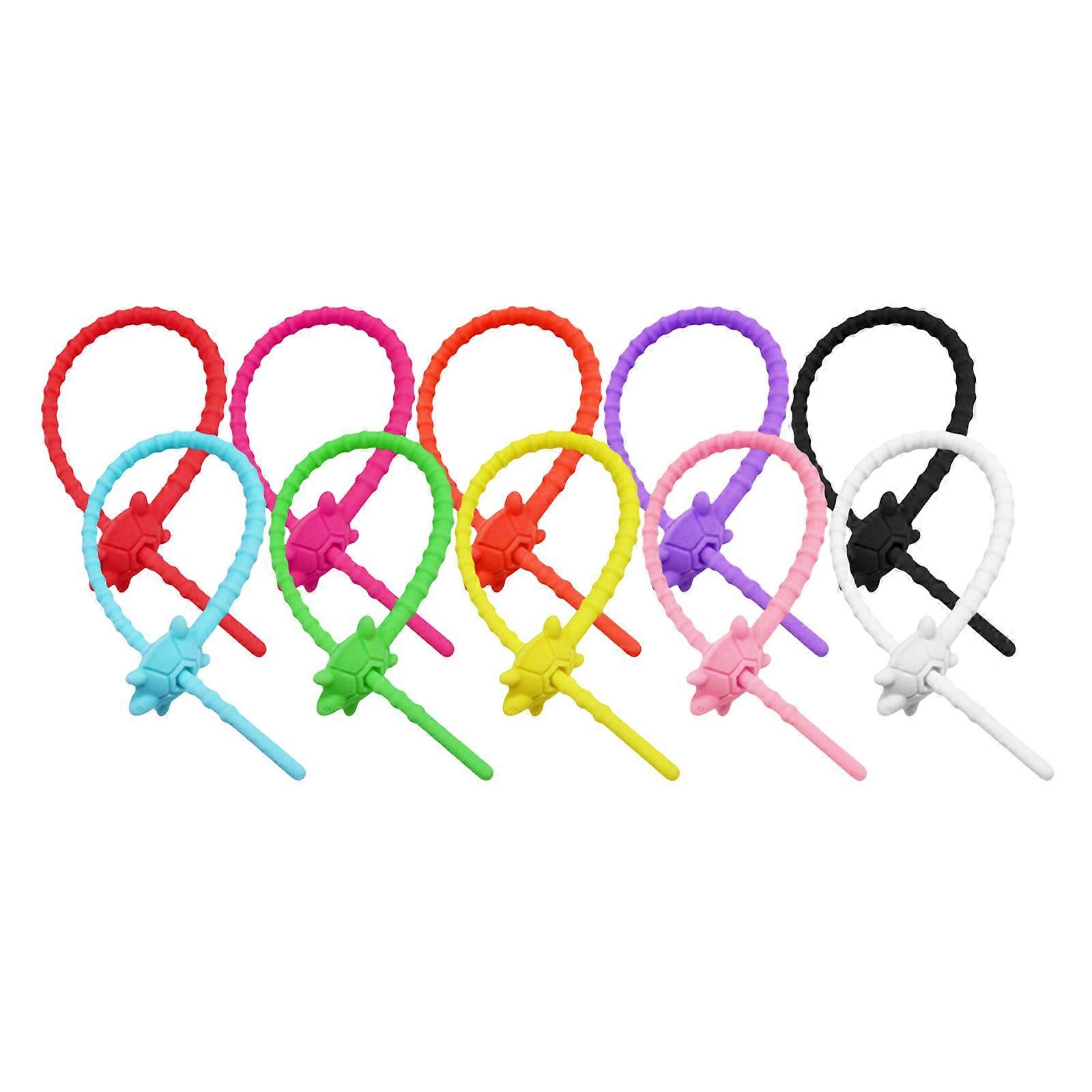 Multifunctional Turtles Shaped Sturdy Silicone Keychain Cable Ties, 10 Assorted Vibranting Color for Everyday Use 22cm