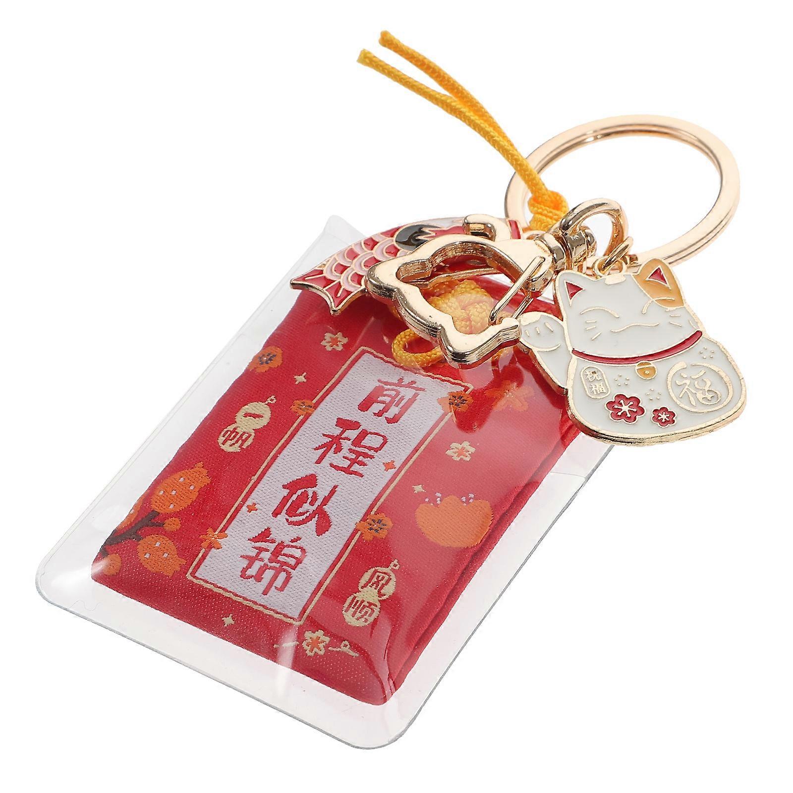 Cute Keychains Japanese Omamori Charm Round Bell Red Cloth Fortune Men 1Pack