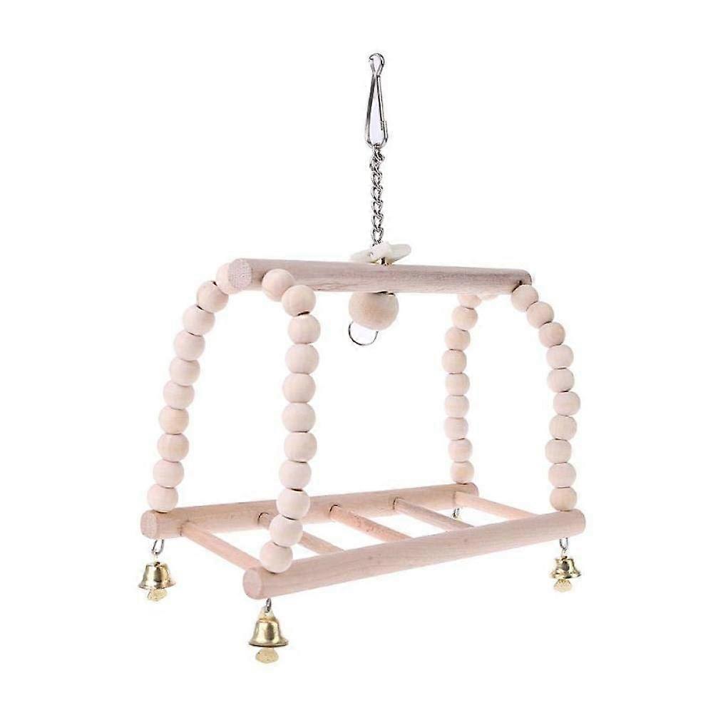 Bird Ladders Pet Swing Bridge Natural Wood Parrot Bird Parakeet Hanging Cage Beads Bell Funny Climb Ladder Pendant 1Pcs