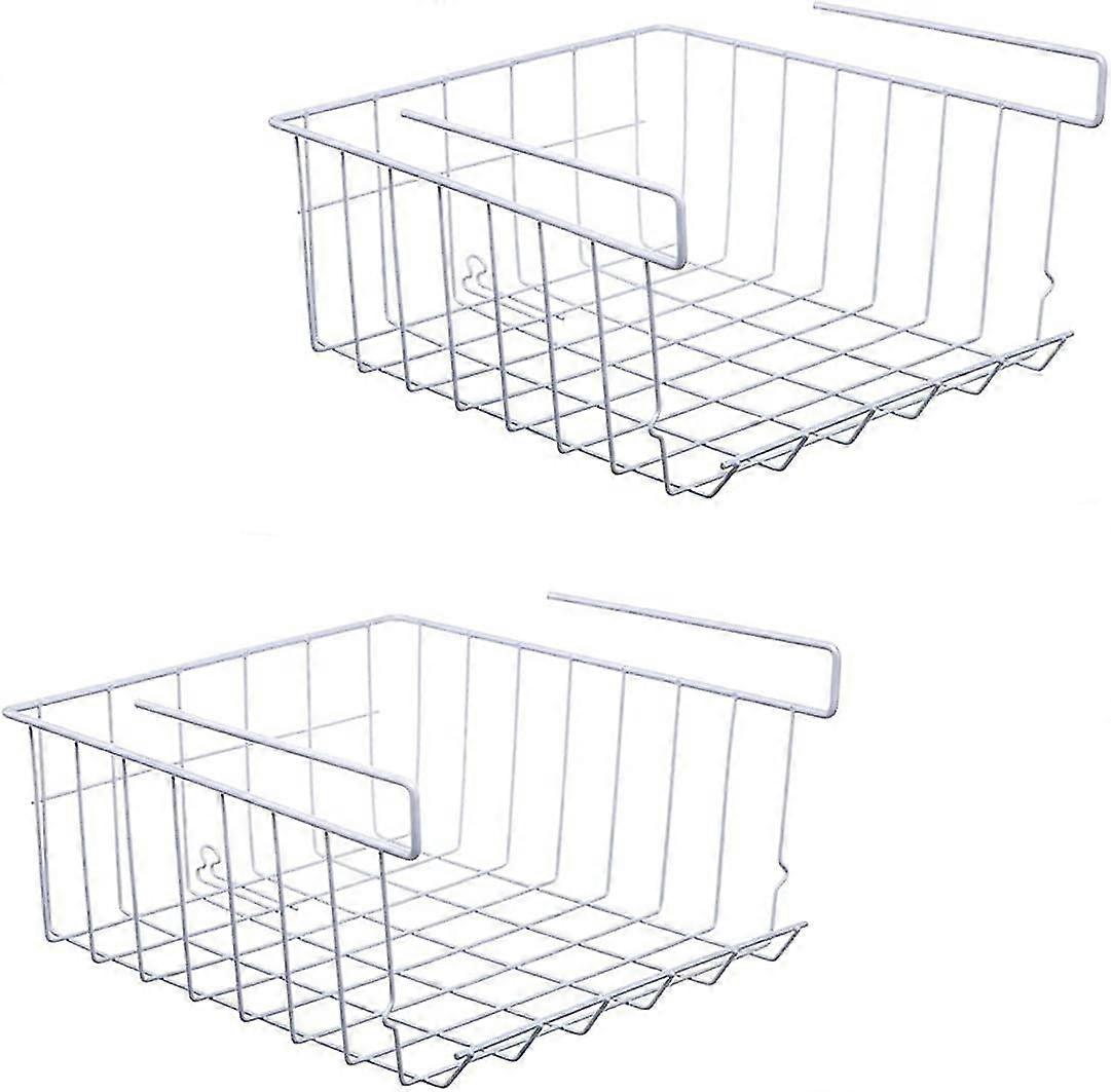 Under Shelf Storage Basket, Hanging Storage Basket, 2pcs Metal Stacking Basket (white, 320*280*130mm) For Kitchen, Office, Pantry, Bathroom