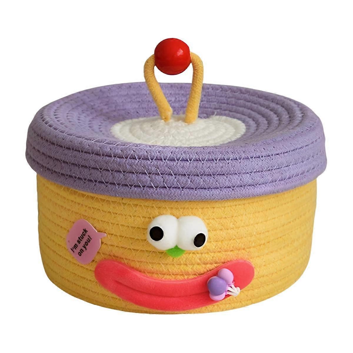 Desktop Storage Basket with Lid Woven Snack Storage Box Coffee Table Living Room Woolen Toys Storage Basket C