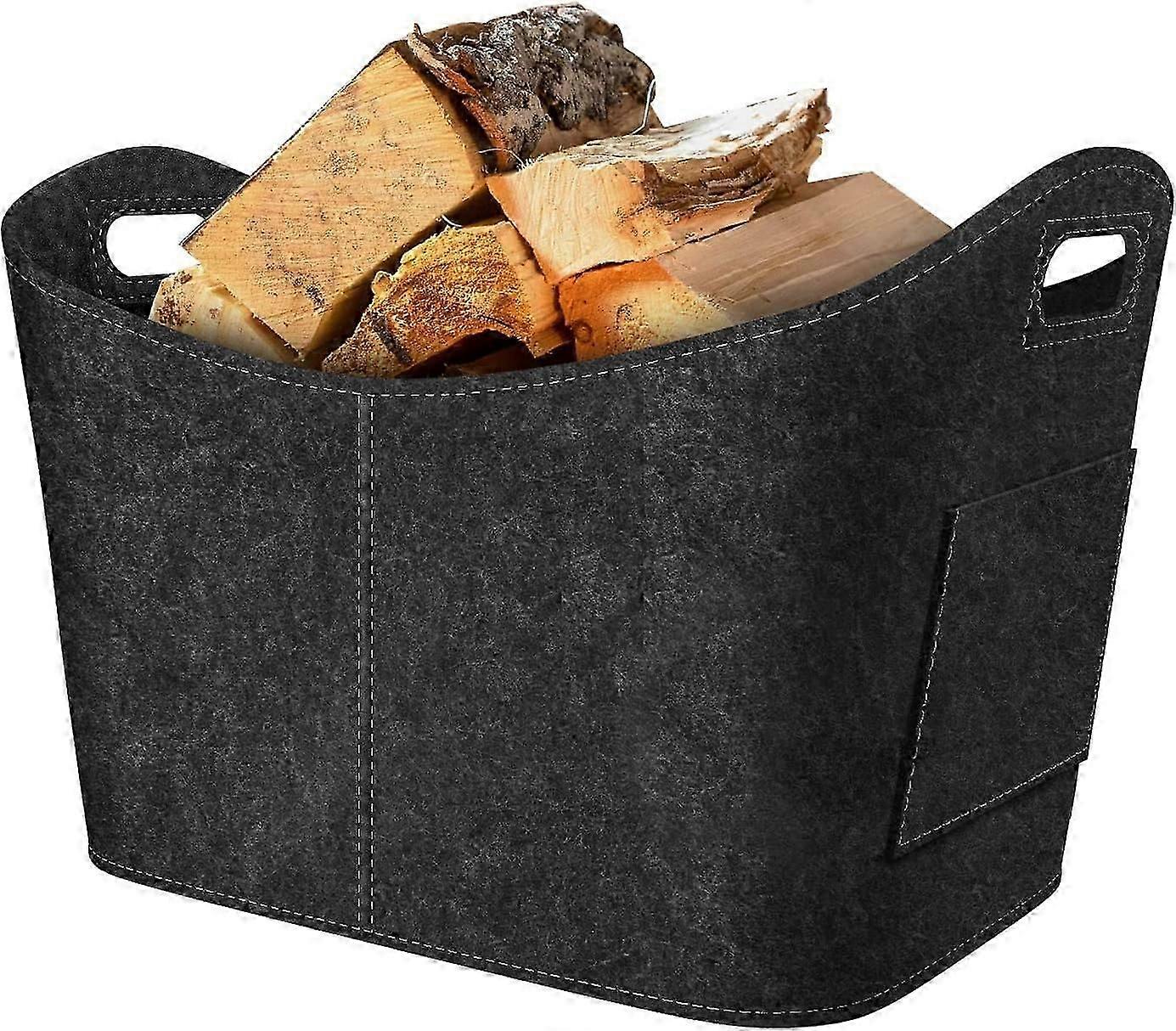 Fireplace Wood Basket, Felt Log Basket, Foldable Felt Log Basket, Fireplace Wood Bag for Wood, Newspapers, Firewood, 53x30x40cm, Dark Gray