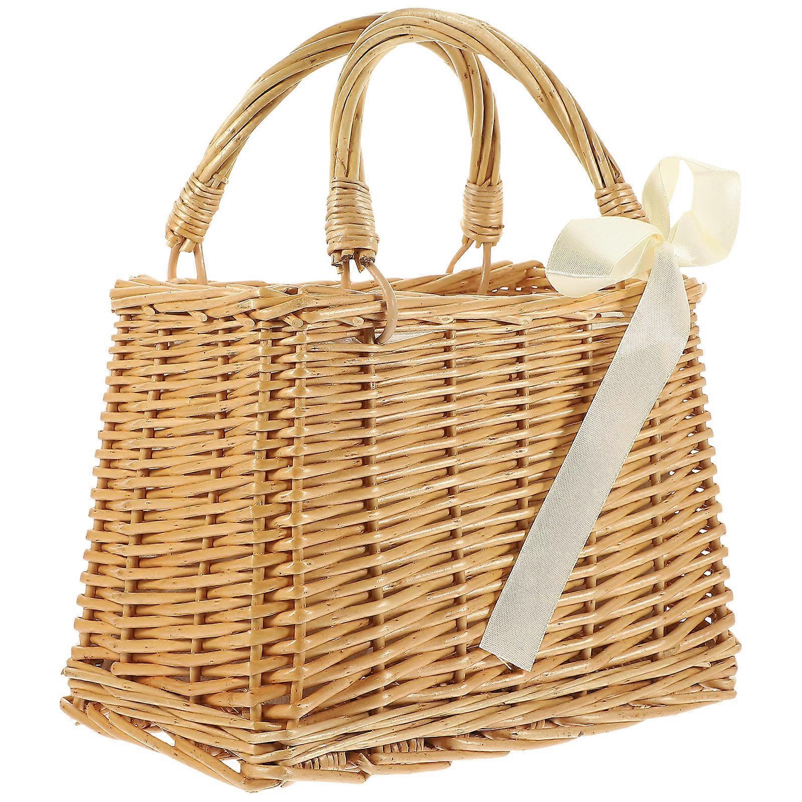 Handwoven Natural Wicker Square Basket with Handle for Picnic, Fruit & Vegetable Storage – Decorative Tote Bag for Women, Beach & Home Use