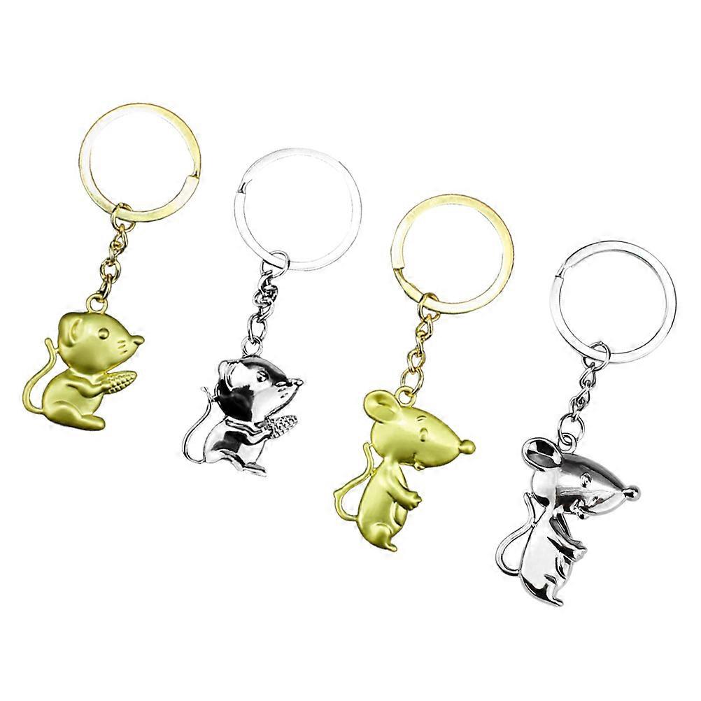 Keychain Toy Mouse Shaped Pendant Car Accessory Assorted Color 9 x 3 x 0.3cm Zinc Alloy Hanging Ornament 4Pcs