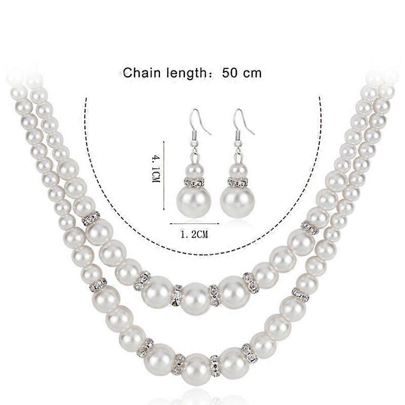 Double Chain Pearl Jewelry Set Women Simulated Pearl Necklace Earrings Jewelry