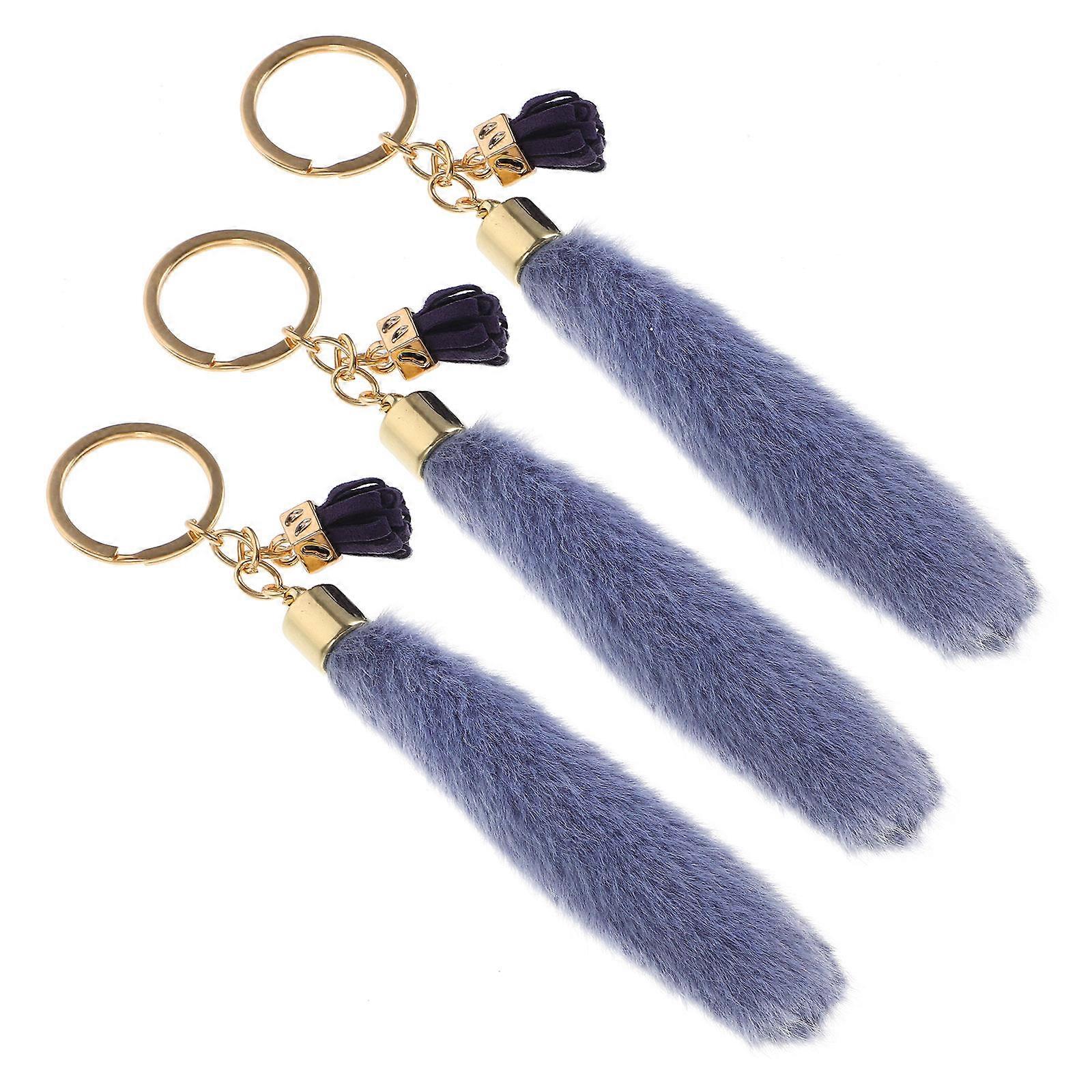 Blue Plush Tassel Keychain with Metal Hardware for Bag Decoration and Cell Phone Ornament 3pcs