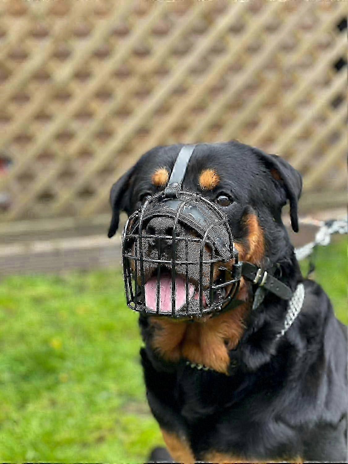 STRONG Wire Metal muzzle Basket Dog Muzzle Rottweiler,Mastiff Golden Retriever & other (R1, Black/Black Leather)