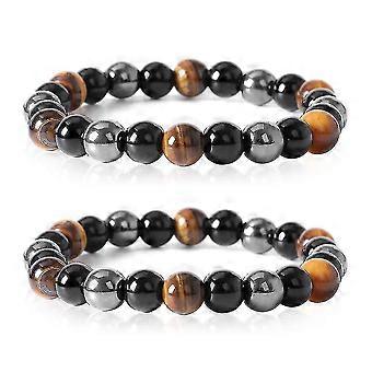 سوار الخرز حماية ثلاثية ، 2 حزمة 8 مم سوار عين النمور حبات الهيماتيت وسوار توازن حجر السج الأسود - aya
