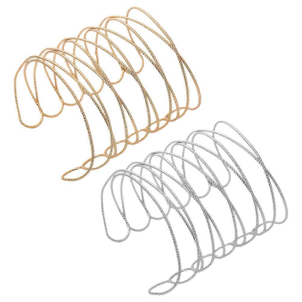 Arm Bangle Hollow Armband Opening Arm Cuff Fashion Bracelet for Women Golden 8x7cm Adjustable 2Pcs