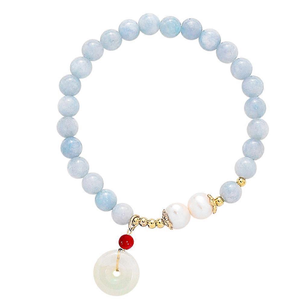 Chic Bracelet with Sky-blue Synthetic Beads for Women One Size Fits All 7 5 Inches