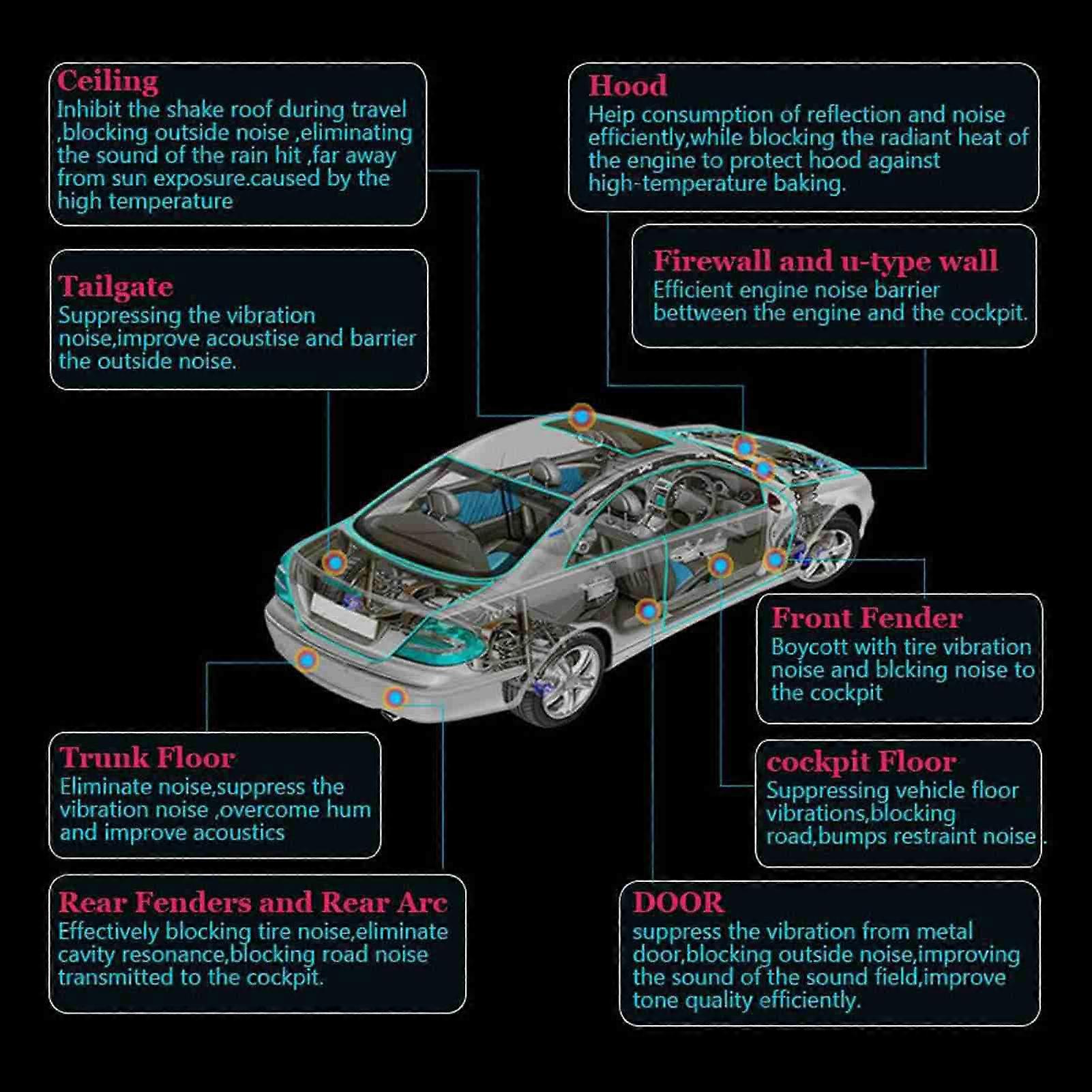 Car Soundproof Deadening Noise Sound Deadener Acoustic Anti-noise Cotton Auto Adhesive Heat Insulation Cell Foam Deadener, 1Roll 200cmx50cm, 5mm