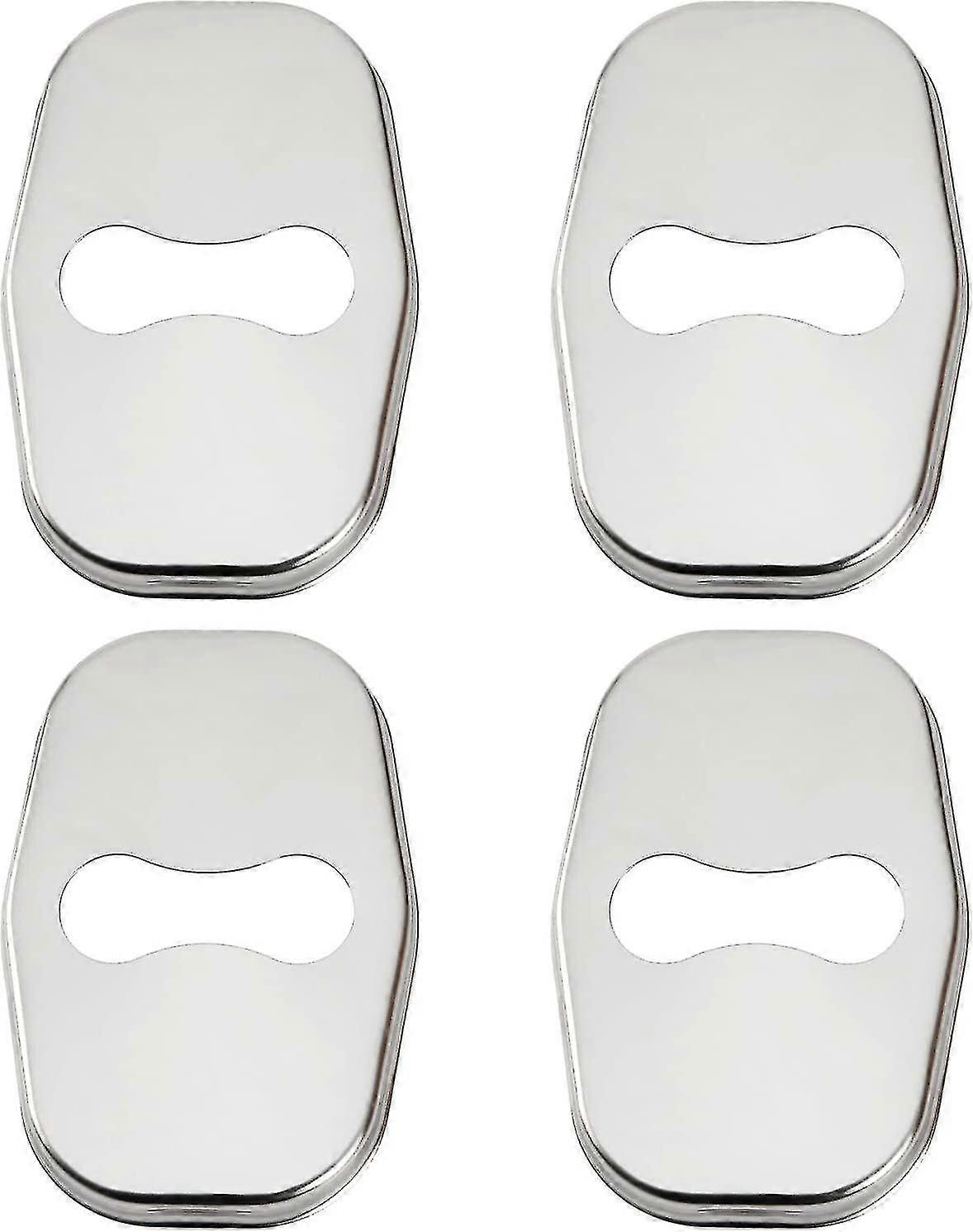 Car Door Lock Cover Protector For Guard Latch Cap Sticker Buckle Anti-corrosion Automotive Interior Accessories Stainless Steel (4pcs, Silver)
