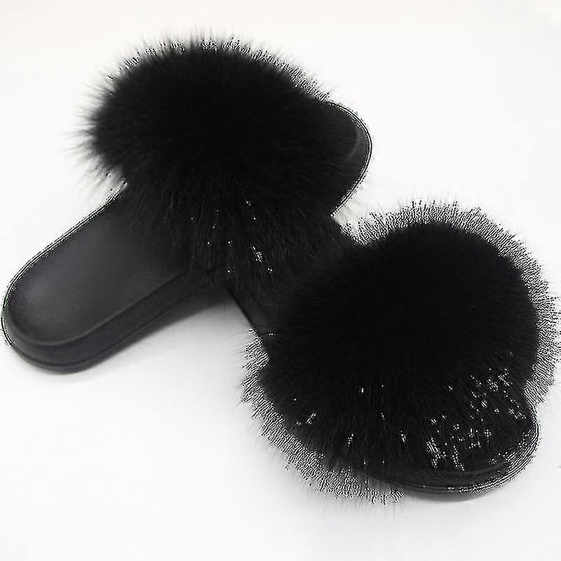 Fox Fur Slides For Women - Comfort Open Toe Fur Slippers Indoor Outdoor