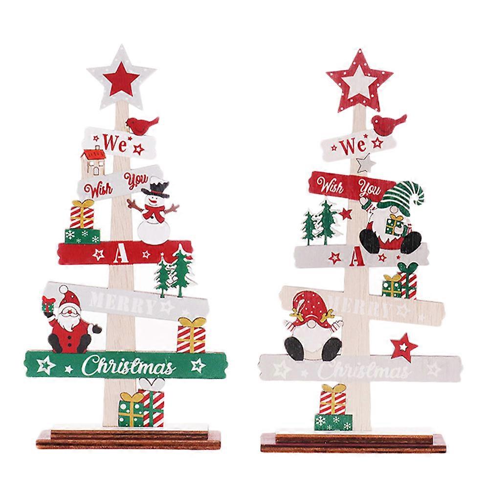 Tree Shaped Ornaments 2Pcs Wooden Xmas Tree Decorations 18x11cm Ideal For Holiday Party Desktop Decor