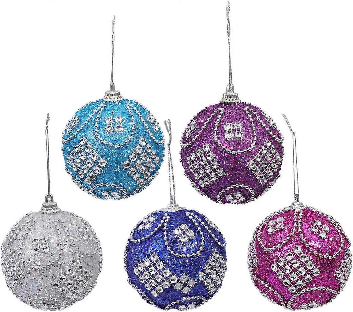 Christmas Tree Ball Ornaments 3pcs Christmas Foam Ball Ornament Glitter Christmas 8cm Baubles Ornament Xmas Tree Decoration Ball (Purple) Xmas Tree Ba