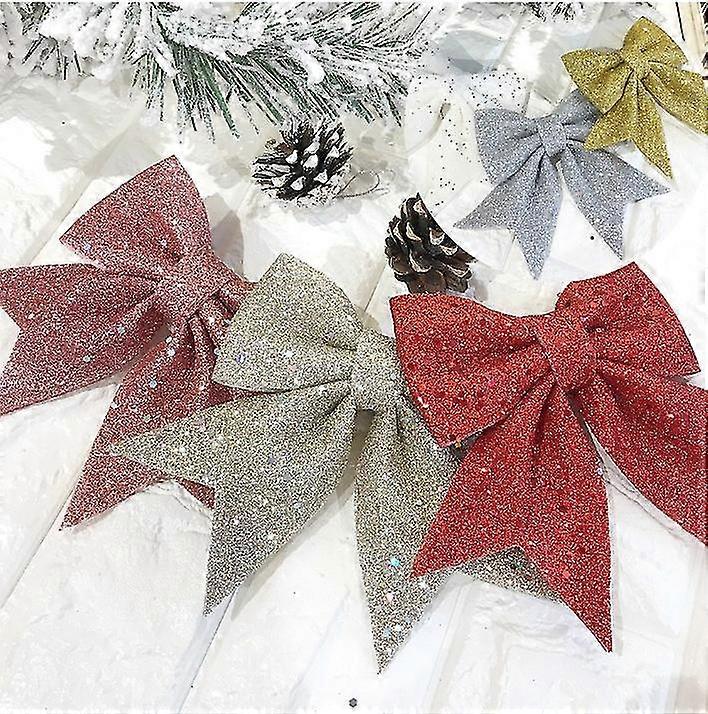 Christmas Tree Top Topper Ribbon Bow Light Up Bow Xmas Party Hanging Decor 12x15cm