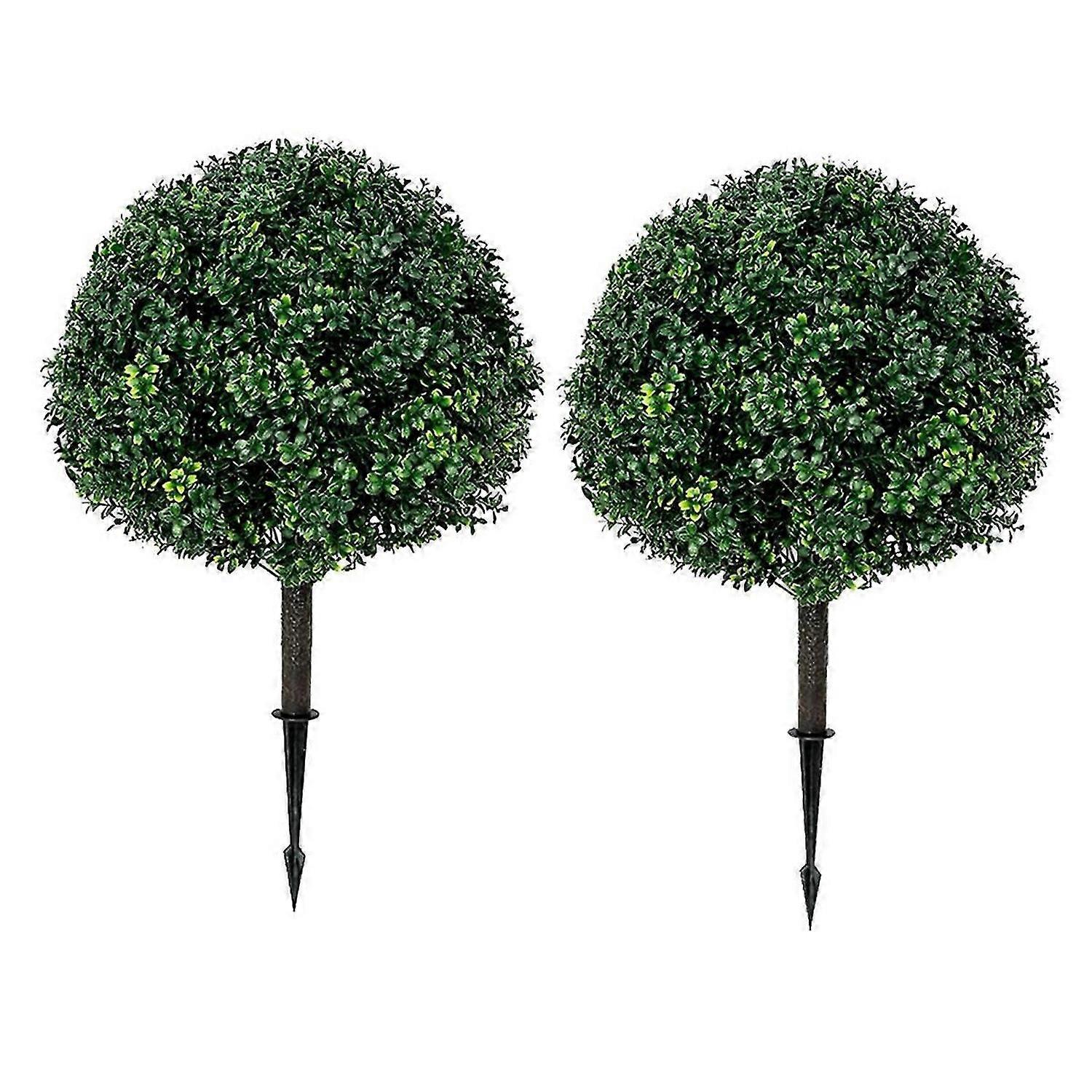 Artificial Boxwood Ball Tree 2 Pack, UV Resistance Rated with Spike, Easy to Install, Fake Outdoor P