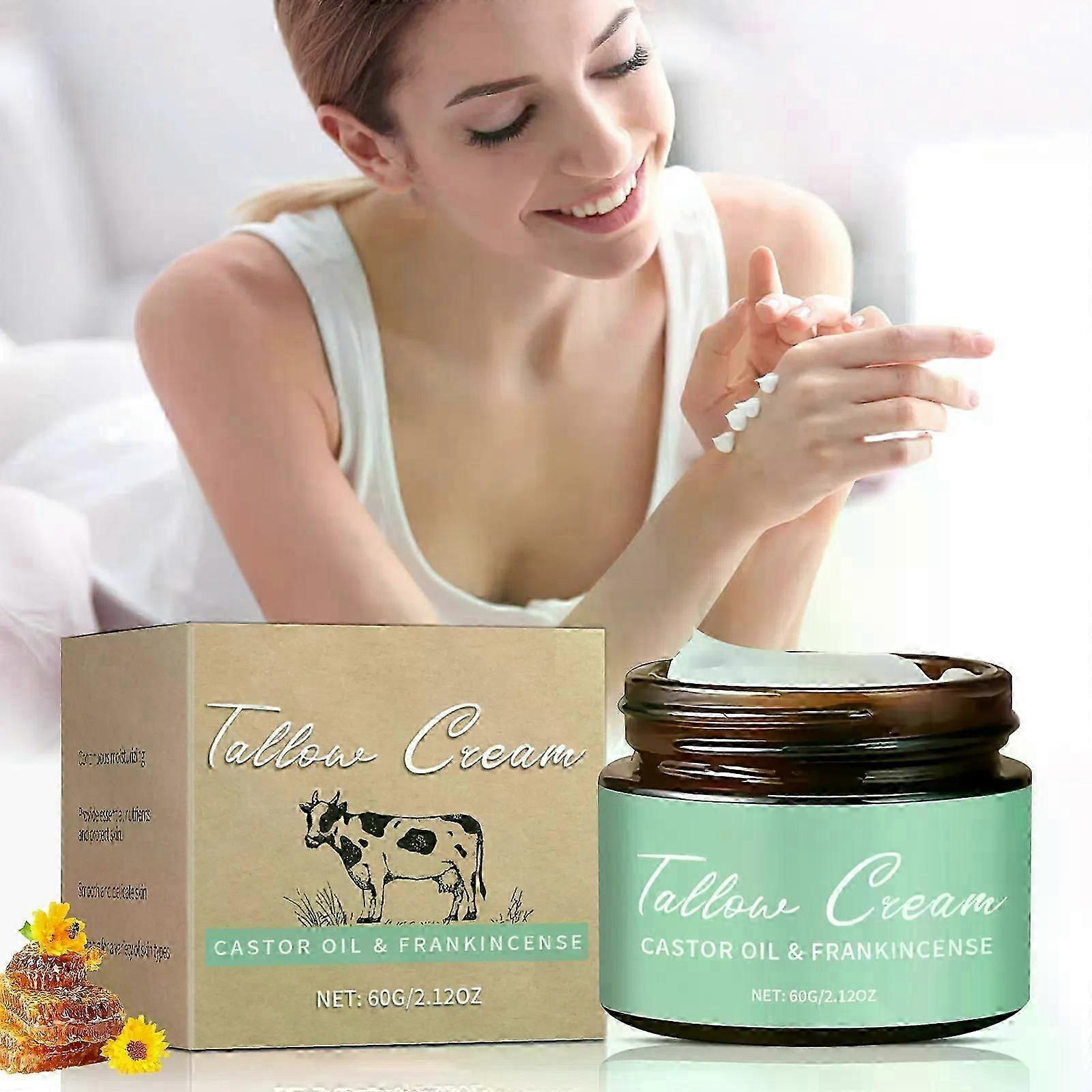 Grass-Fed Beef Tallow with Frankincense Oil and Castor Oil, Grass Fed Beef Tallow for Skin,Whipped Beef Tallow Frankincense Oil Castor Oil for Skin Fa