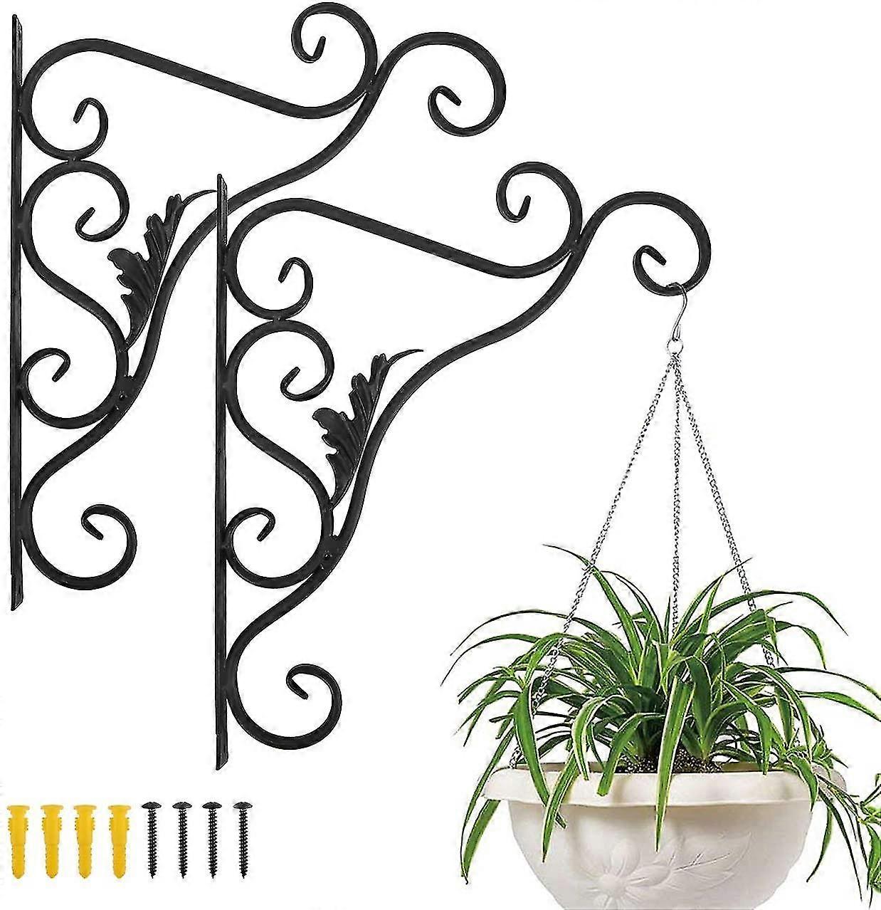 Balcony Wall Mounted Plant Holder, Set Of 2 Retro European Leaf Shape, Wrought Iron Hanging Hook, With Screws, Outdoor Decor ,painted Black
