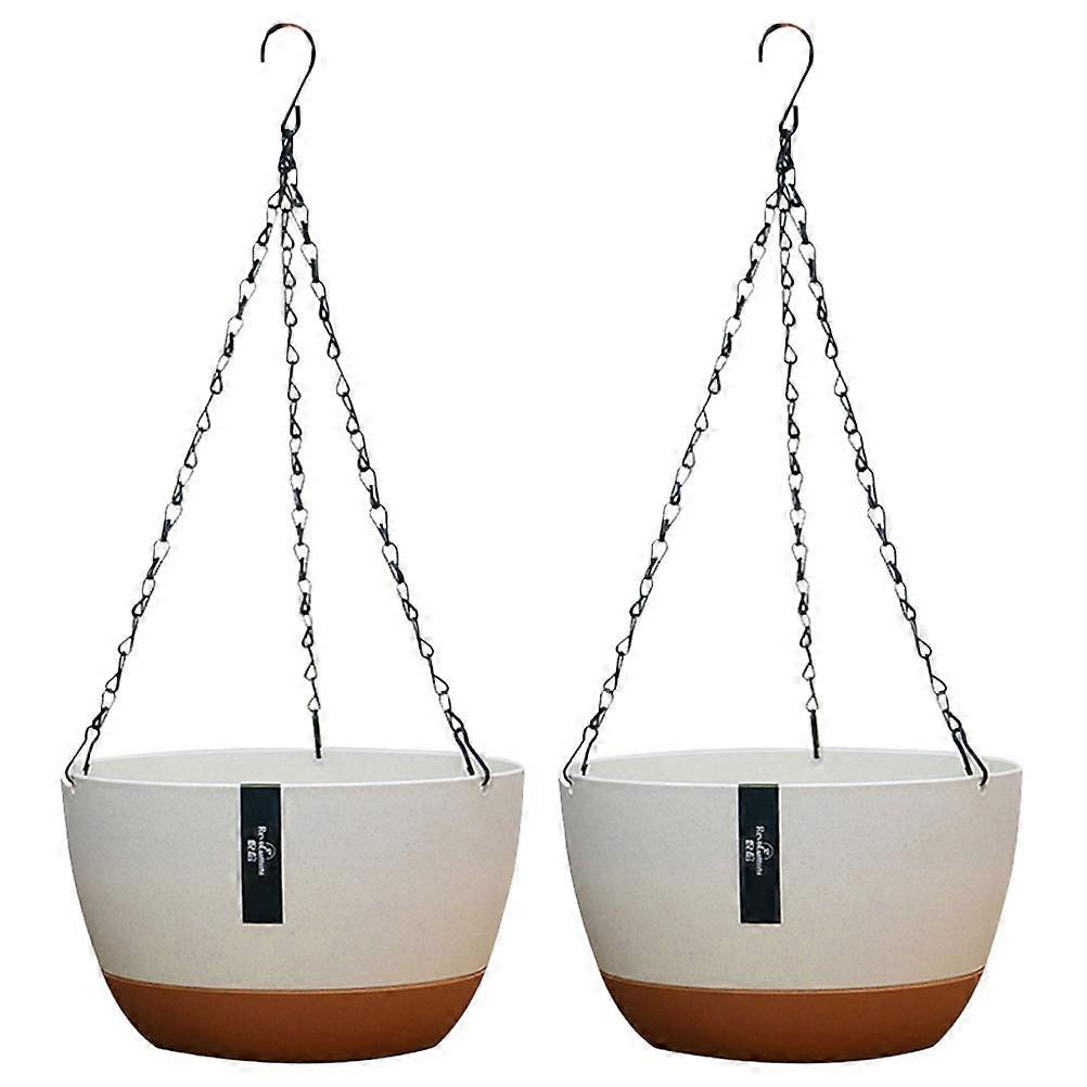 Balcony Hanging Flower Pots Set of 2 Resin Self Watering Planters Wall Mounted Garden Decor